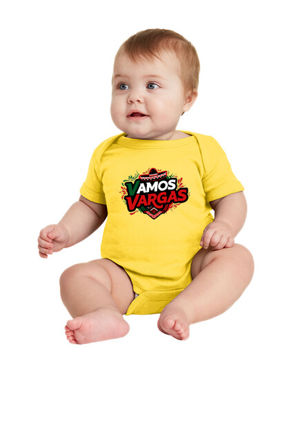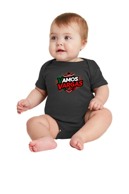 Made from a smooth cotton-poly blend, this onesie keeps babies comfy while representing the Vamos Vargas team in style. The bright red, green, and white logo stands out against the soft granite-heather fabric for a spirited look everyone will love.